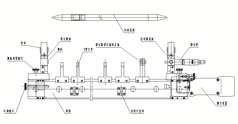采用微分筒讀數直觀;檢定內距尺檢具示值誤差值方便;用通用千分尺量塊即可檢定。